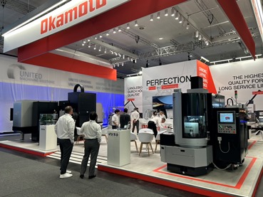 岡本工作機械製作所様ブースにてAERO LAP、現地自動化したものを展示されております。